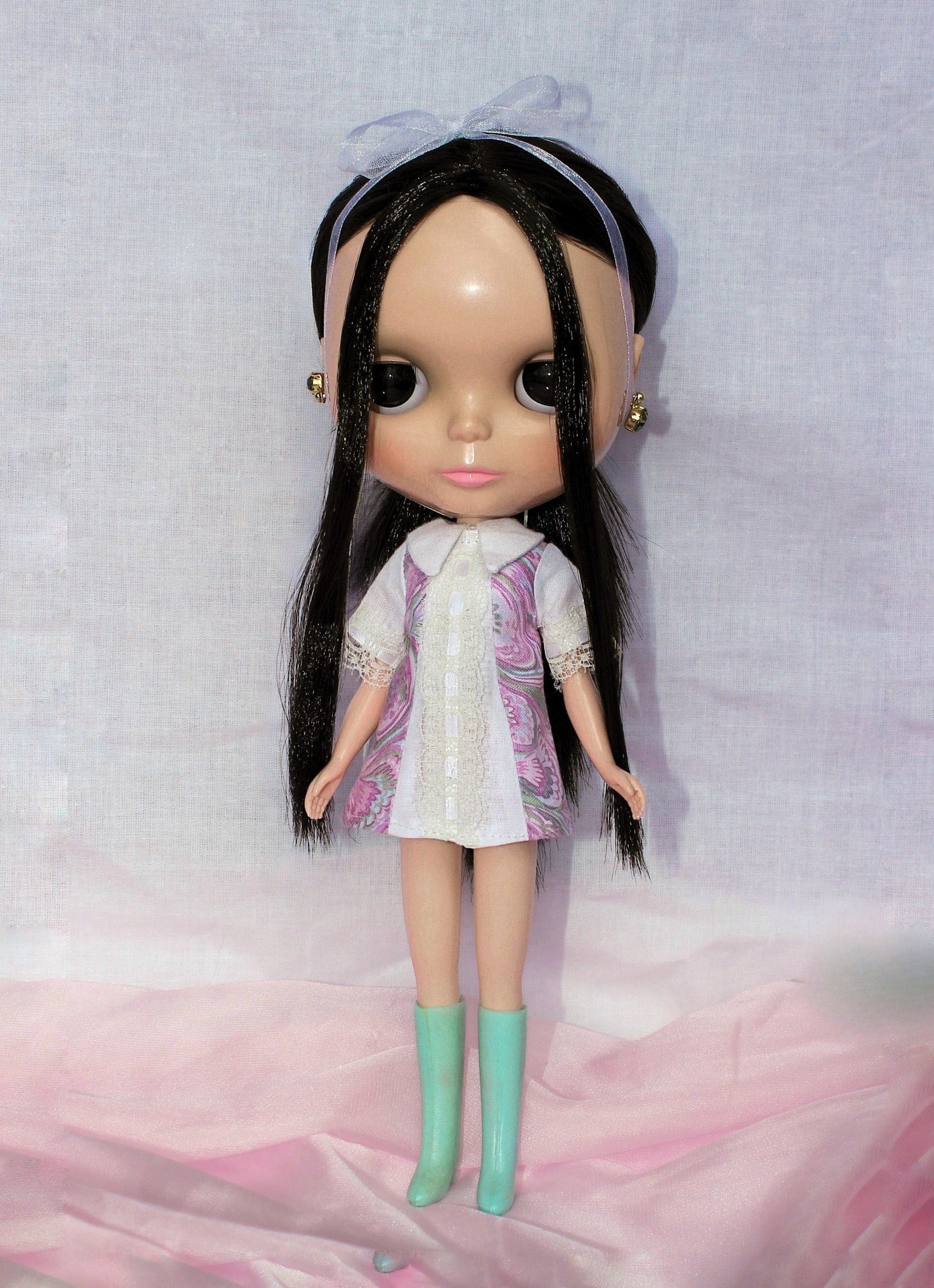 Inspired by the legendary Mary Quant, queen of the mini dress! This mod dress is made of 5 panels and features vintage lace embellishments.
